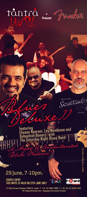 Blues Deluxe with Ehsaan Noorani & The Saturday Night Blues Band at tantra Calling All GigsJune 24, 2012Kolkata Gigs News0 Comments Blues Deluxe with Ehsaan Noorani & The Saturday Night Blues Band at Tantra featuring Ehsaan Noorani Loy Mendonsa Debashish Banerji Date: 29th June Time: 7PM – 10PM Vanue: Tantra, Park Hotel, Park Street Couple Entry [mappress mapid=”33″] Blues Deluxe with Ehsaan Noorani & The Saturday Night Blues Band at tantra was last modified: July 13th, 2012 by Calling All Gigs