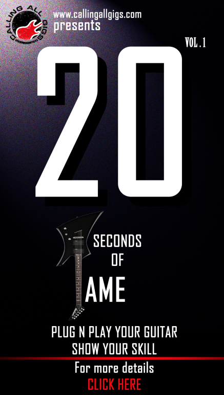 Calling All Gigs presents “20 seconds of Fame – Vol.1”: Win Exciting prize Calling All GigsNovember 6, 2011Online Competition0 Comments Calling All Gigs presents 20 seconds of FAME: Vol.1 Show your guitar skill within 20 seconds Calling All Gigs presents “20 seconds of Fame – Vol.1”: Win Exciting prize was last modified: November 24th, 2011 by Calling All Gigs